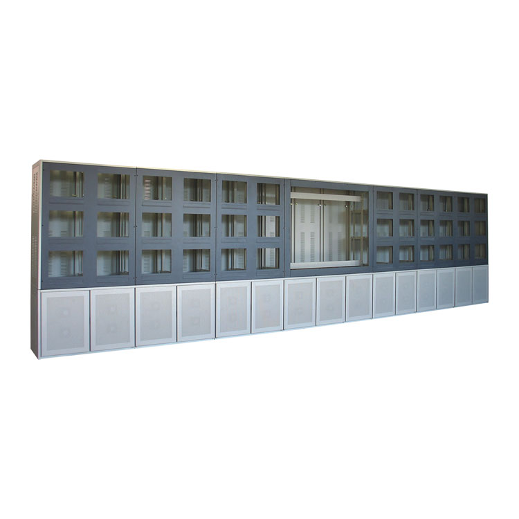 1.此電視墻可適應多種用途加裝不同設備,公司備有標準現貨,用戶只需選配設備面板。可按照客戶現場機房寬高度,與設備的數量,尺寸等設計制作